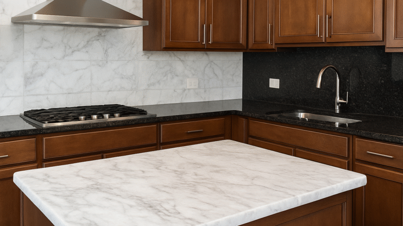 Marble and granite have long been popular choices in Indian homes for their durability, elegance, and timeless appeal. Whether you’re designing a modern apartment or a traditional South Indian home, these natural stones add luxury to floors, countertops, and walls. White marble, such as Makrana or Italian Carrara, gives a clean and premium look,